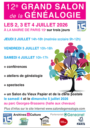Grand salon de la Généalogie Paris 15ème Jeudi 15 , vendredi 6 et samedi 17 mars 2018 ![]() En savoir +